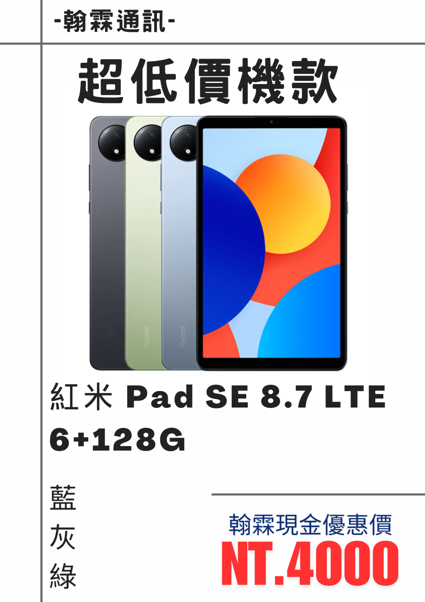 請先告知店家您是[翰霖網友],才享▶︎網路會員現金購機優惠價!